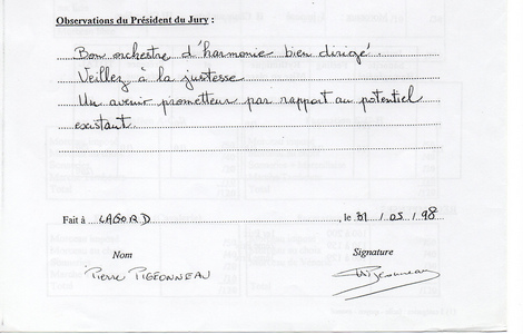 Liste des morceaux imposés, Résultats et Appréciations du Jury